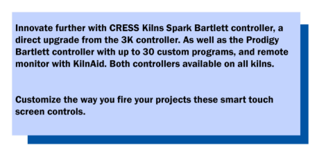 Cress has been at the forefront of firing processes for much of its history, being first in our field with UL listing of ceramic kilns; ultra reliable element connections; infinitely variable power controls and with inexpensive automated firing. The Cress family has contributed its skills in graduate electrical and mechanical engineering and thermodynamics to the design of professional, fine quality firing equipment.